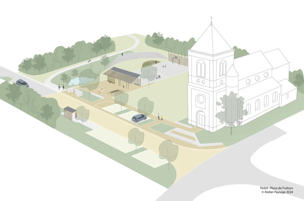 L’aménagement du cœur de village a pour objectif de qualifier une « place publique » en redessinant une portion de rue, le parvis de l’église et une esplanade empierrée existante.